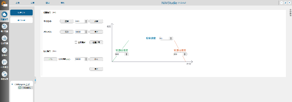 (1)打开NiMStudio,连上我司的伺服电机,注意示例电机使用的是CANopen通信的伺服电机,其它电机同样操作方法。